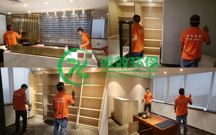 誠效環保公司當天派施工人員進行現場勘察,制定和分配施工任務;第二天加班加點,在保證每一處都施工到位的前提下,不負使命完成任務5個工作日后進行檢測驗收,室內空氣中的有害物質均在國標范圍內。